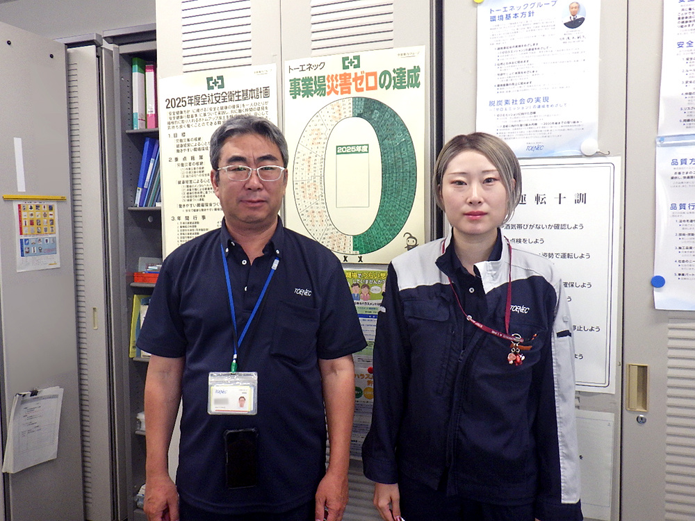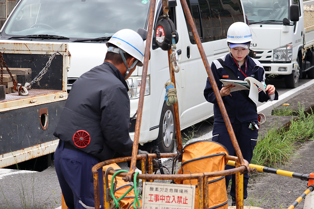 - 女性が現場で活躍できる環境に魅力を感じました。就職活動当時、施工管理職で女性を積極的に採用している企業が少ない中、トーエネックの地中線部内で女性技術職の募集があり、ここなら自分らしく働けると感じました。まだまだ女性技術者は多くありませんが、私自身が現場で経験を積み、後に続く人の道を広げていけるようこれからも努力したいと思っています。
